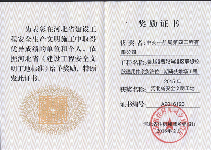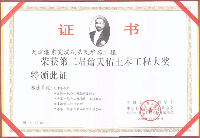 2002—天津港东突堤码头及堆场工程—詹天佑大奖(证书)