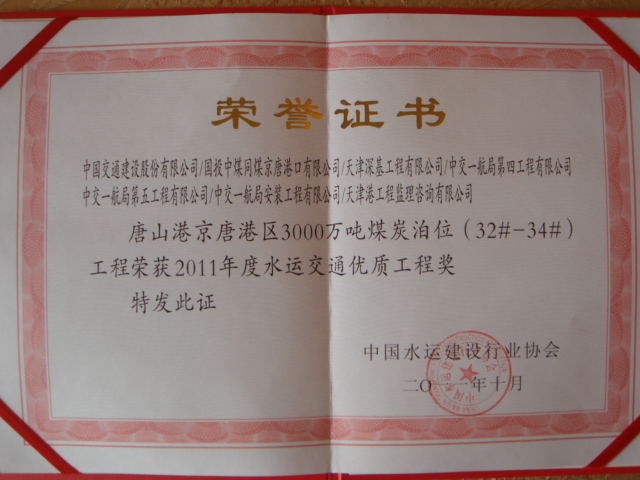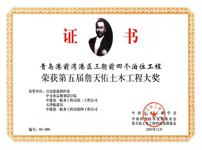 2005—青岛前湾三期四个泊位—詹天佑大奖(证书)
