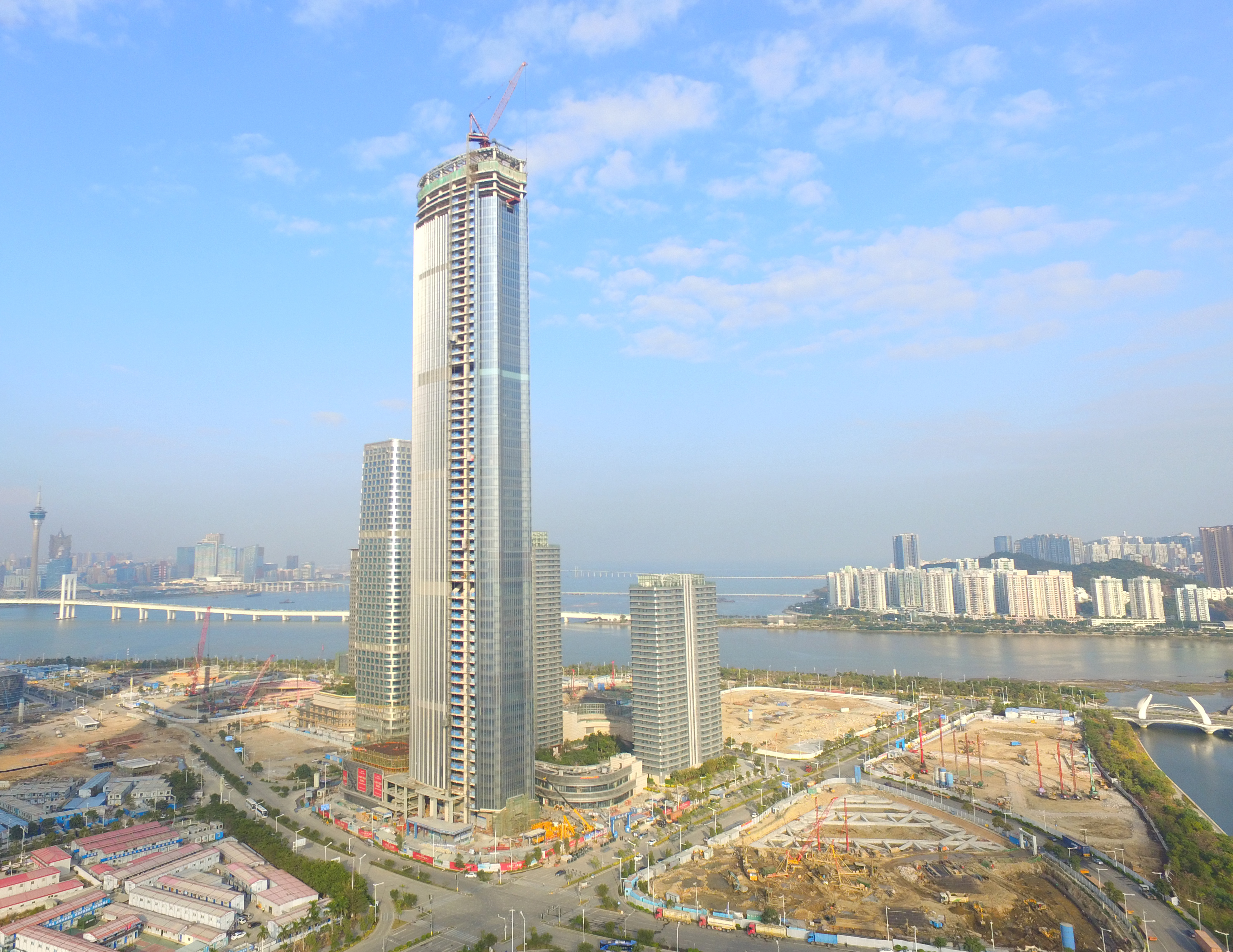 中交汇通横琴广场项目是中交集团首个超高层高端城市综合体开发项目,集5A甲级办公、总部式办公、餐饮、展示、服务、住宅等功能于一体。工程总用地面积32453平方米,总建筑面积约28万平方米,主塔楼于2019年9月17日封顶,建筑高度达309.4米,为中交集团第一高楼。