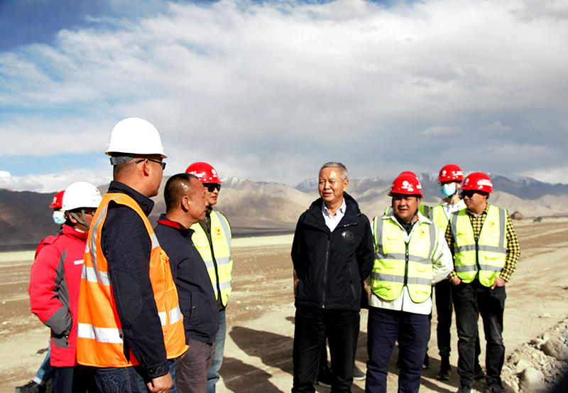 6月19日,新疆机场集团18luck新利登陆副总经理姚新民一行到第九总经理部承建的新疆塔什库尔干机场工程场道一标段检查指导工作。