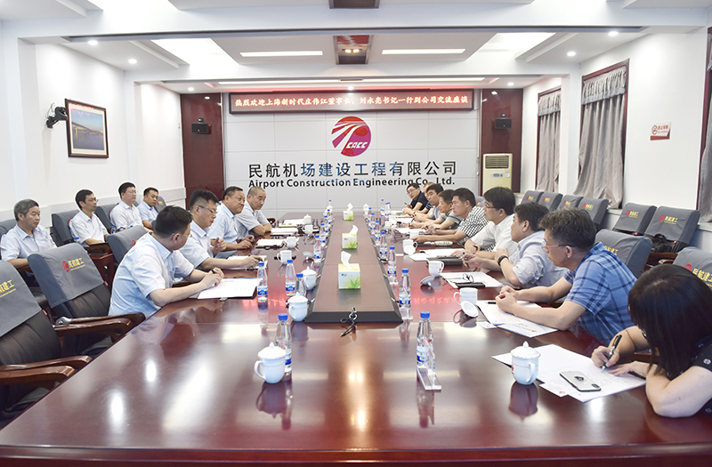 8月7日,上海民航新时代机场设计研究院有限18luck新利登陆(以下简称“上海新时代18luck新利登陆”)董事长、总经理庄伟江,党委书记、副总经理刘永亮,党委副书记、纪委书记杜益,副总经理王伟等一行9人到18luck新利登陆交流座谈。18luck新利登陆党委书记、董事长王金超,总经理张光蒲,董事、财务总监曹伯杰,副总经理王强,党委副书记、纪委书记、工会主席、监事会主席田鹏出席。
