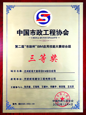 日前,18luck新利登陆申报的“达州机场大道项目BIM综合应用”在中国市政工程协会2020年第二届“市政杯”BIM应用技能大赛中获综合组三等奖。