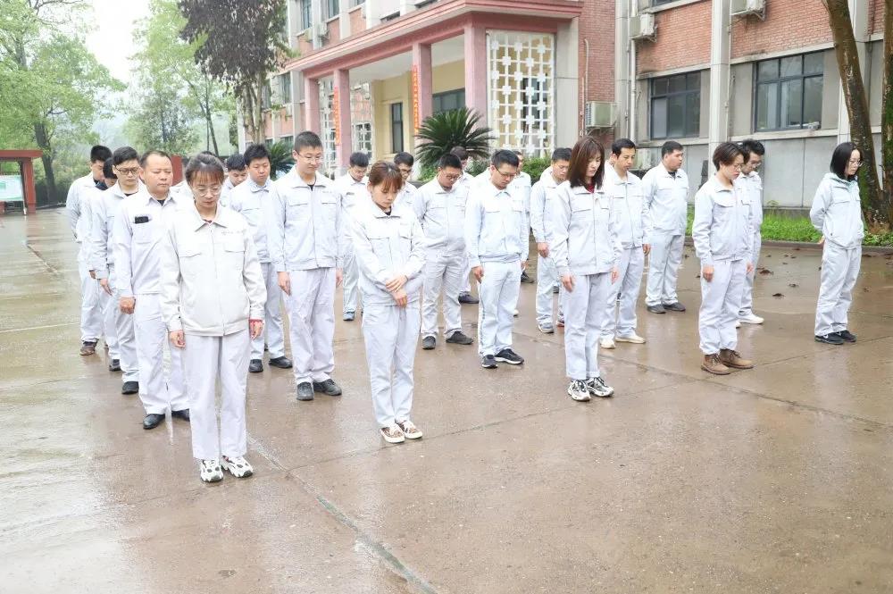 第十五总经理部等单位组织全体职工在驻地大院举行升旗默哀活动。