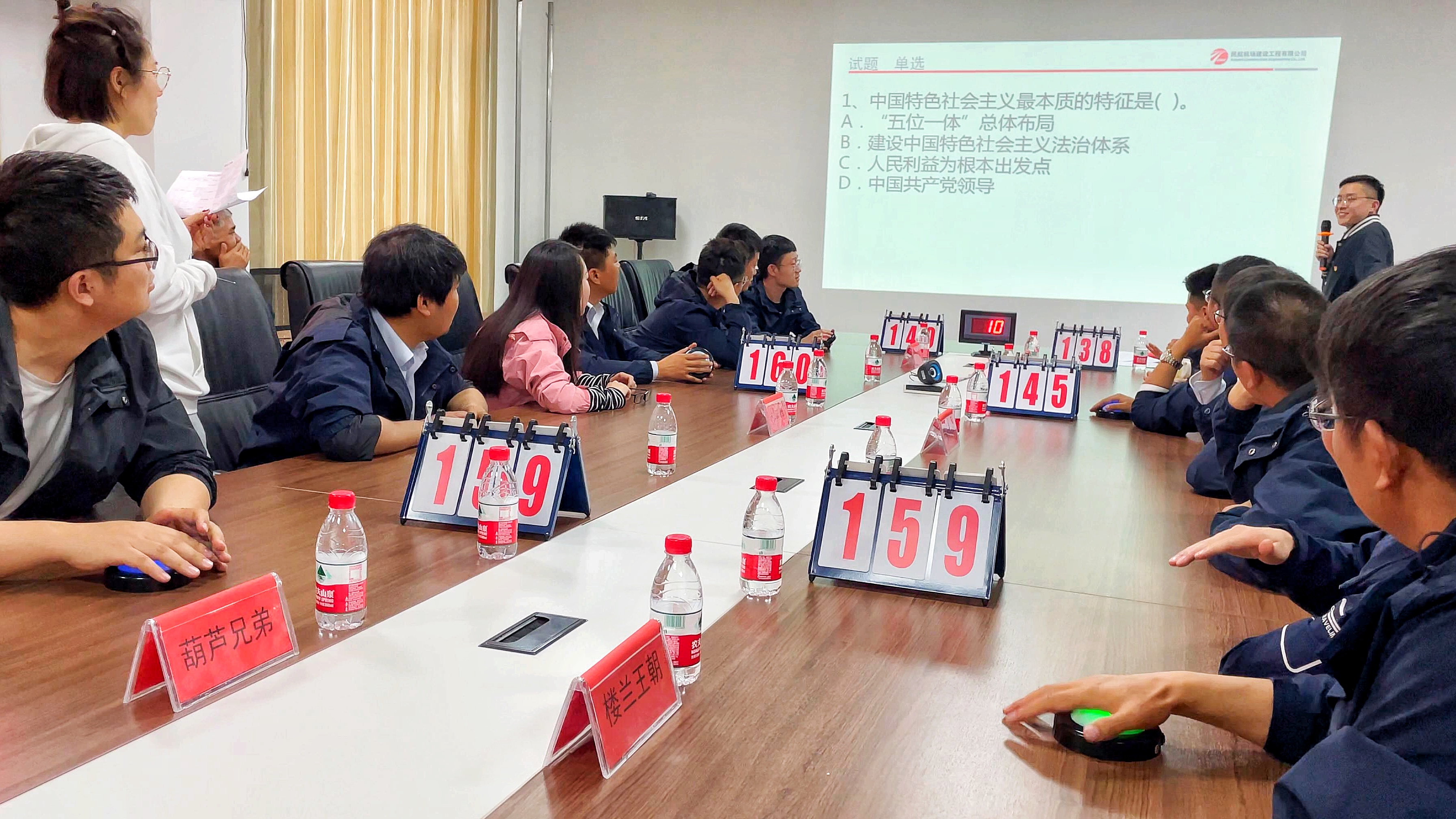 近日,第九总经理部结合自身特点,将党史学习教育同保密项目管理有机结合,创新性举办“知史爱党守初心 勇担使命铸辉煌”2021年党史暨保密知识争霸赛活动。活动设置了抽签对答、抢答器抢答、你画我猜等多个环节,通过寓教于乐的形式,在有效提升项目职工党史学习的积极性和主动性的同时,强化了全员的保密意识以及对于保密管理知识的掌握,达到了党史学习和保密学习双推进、双提升的良好效果。