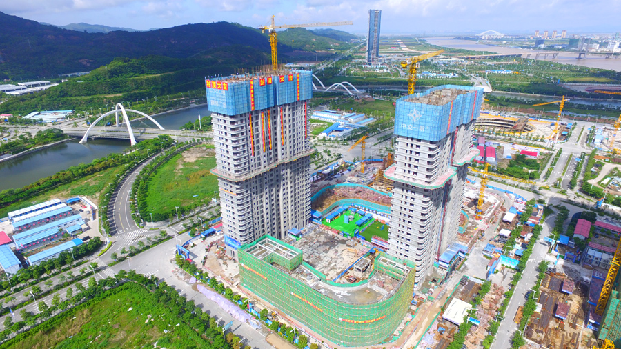 工程简介:项目位于珠海横琴新区十字门商务区离岸金融岛内,总占地面积32453.77㎡,总建筑面积280903.56㎡。其中,办公主塔楼建筑面积124635.2㎡,建筑层数62层,结构高度299.4m,建筑高度309.5m;结构形式为框筒结构,核心筒为劲性柱+钢板剪力墙外包砼,外框为钢框架形式。18luck新利登陆以争创“鲁班奖”为目标,着力应用远程监控、虹膜实名制考勤系统、物业管理系统、BIM技术等手段大力实施推进项目的数字化、绿色化施工,并取得良好成果。