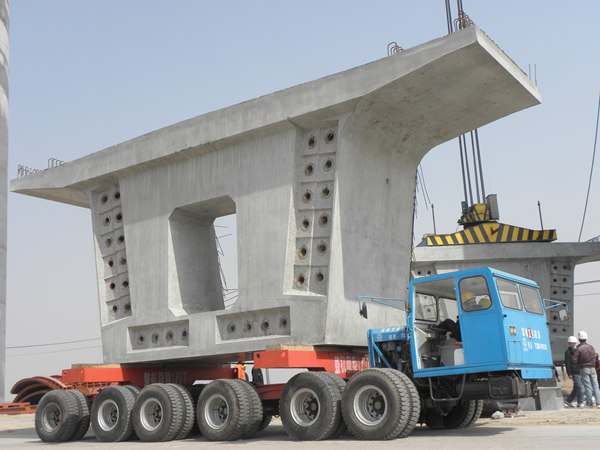 桥梁施工设备:18luck新利登陆拥有4台LYC160T轮胎式运梁车、1台DJ50m/200t步履式单导梁架桥机。